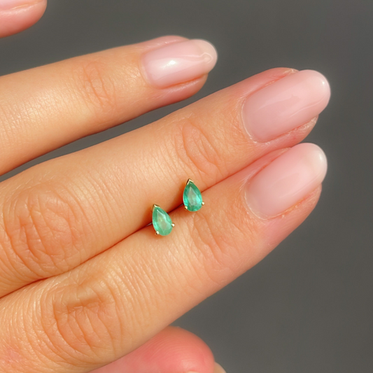 9ct Yellow Gold Emerald Pear Cut Earring Studs