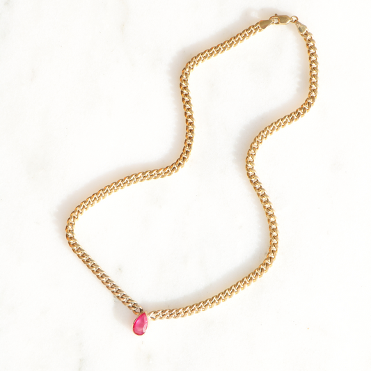 9ct Gold Pear Cur Cuban Necklace