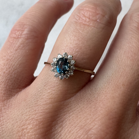 9ct Gold Vintage London Blue Topaz and Diamond Ring