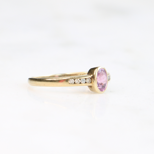9ct Vintage Pink Sapphire and Diamond Ring