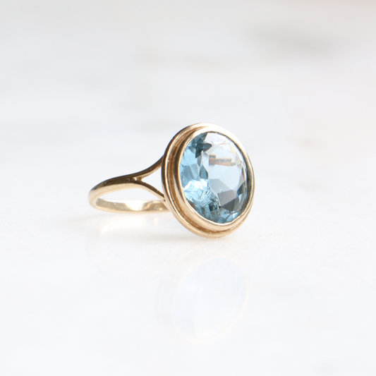 9ct Gold Vintage Oval Bezel Set Topaz Ring